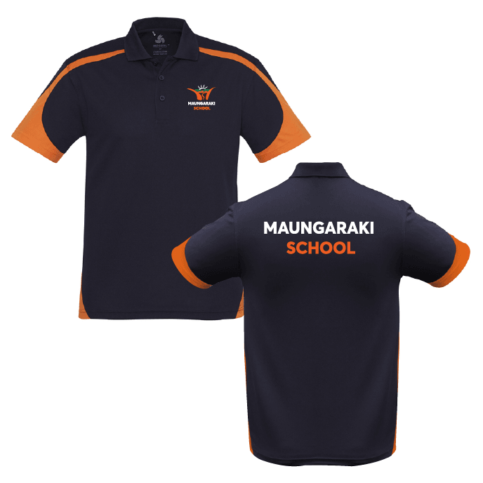 The new navy blue polo has an orange stripe, the school logo on the front and the school name across the back. These can be worn every day including Maungaraki Fridays and trips. These won't be used for sporting teams or events representing the school.